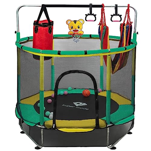 - u3010Great Gift Choiceu3011 The recreational trampoline comes with gymnastic rings, basketball hoop, swings, sandbags, ocean balls, baskets, etc., which can add fun to jumping. A great Christmas/ Birthday gift for boys or girls aged 1+.