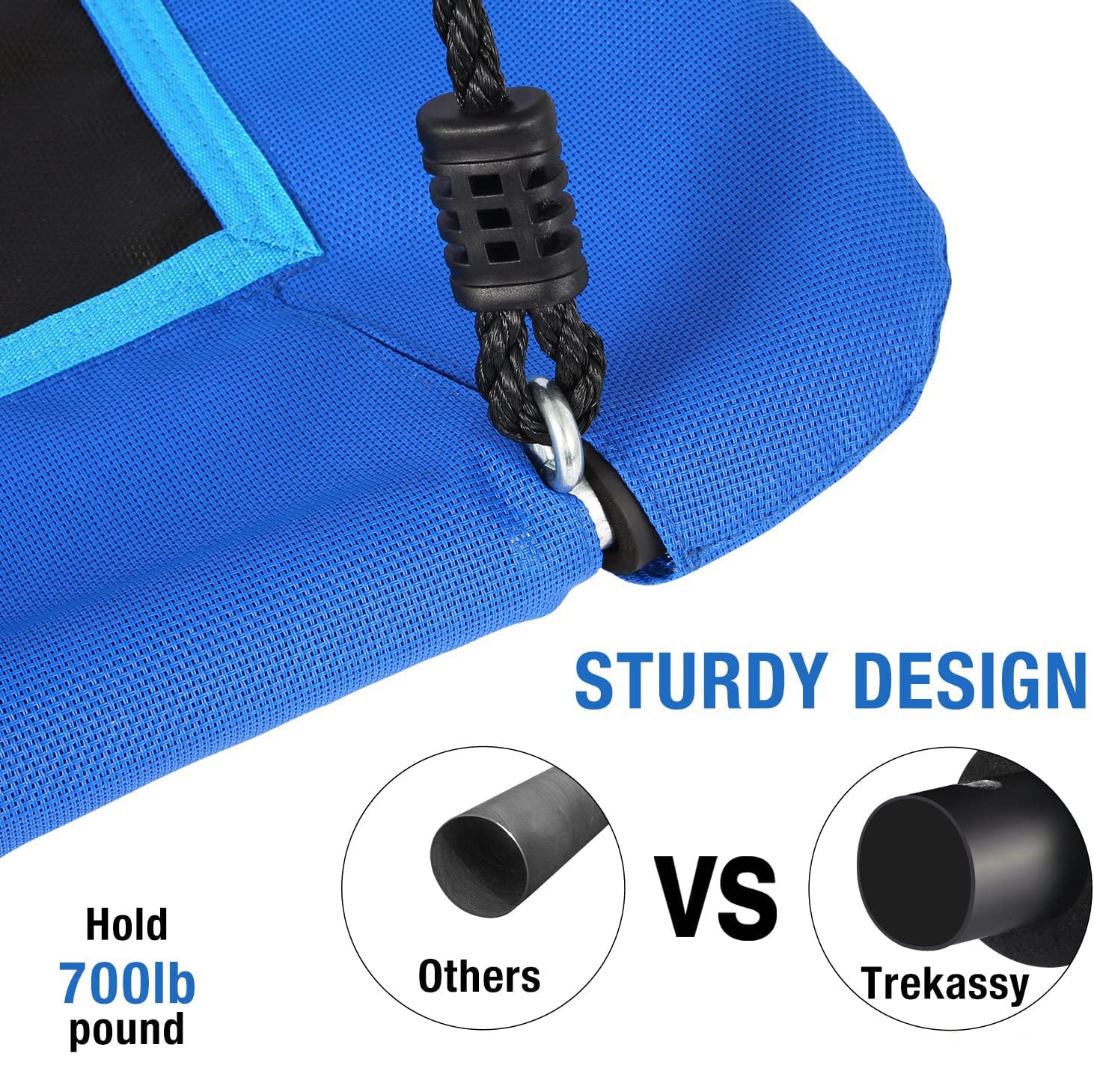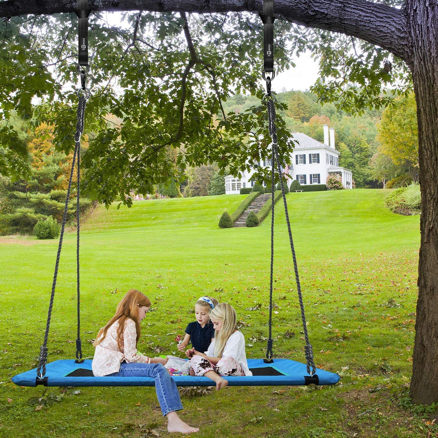 - u2705STURDY LARGE PLATFORM SWING: 60" x 32" steel frame with tight weave fabric seat fits 5 kids or two adults. Weight rated to 700 pound as a great platform swing. Safer for child to swing for a long time.
