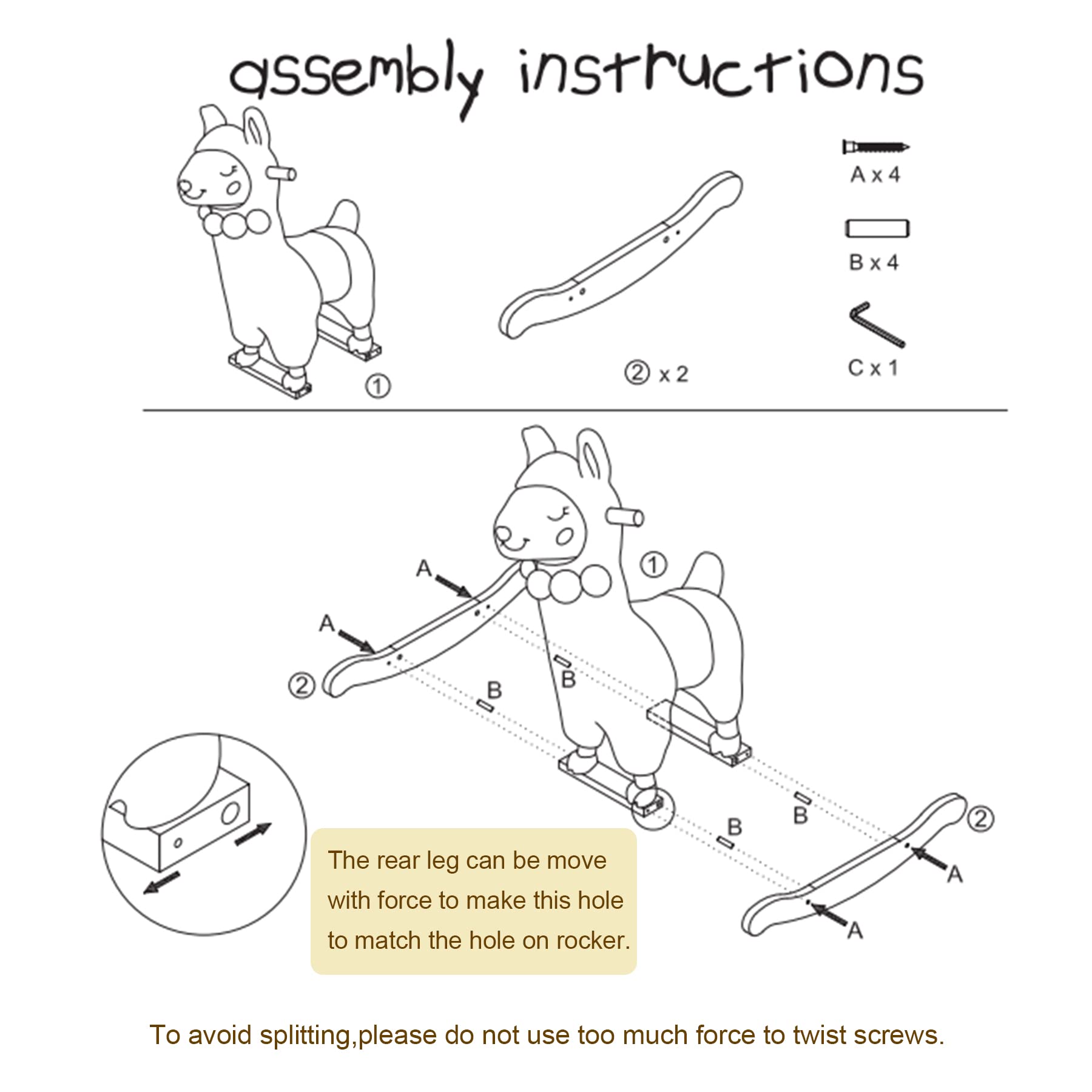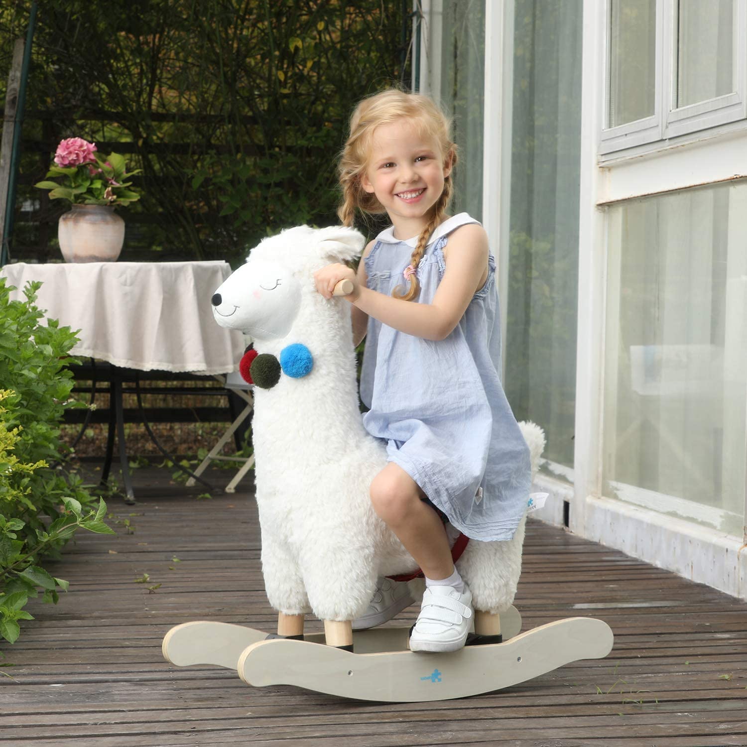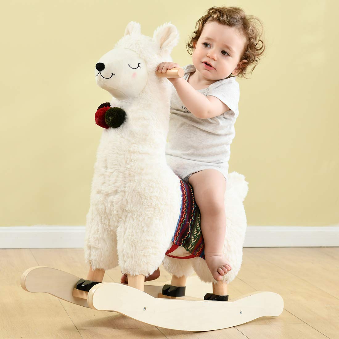 - u265f Certified Safe Material & Quality Guaranteeu265f - Our products feature third-generation plush fabrics and premium PP cotton, PP cotton can still be kept breathable in summer. This white llama/Alpaca rocking horse will accompany your child safe growth. Material of our rocking horse used is strict to Toys Safety Standards EN-71 CE in Europe and ASTM F963 in US. If the product does not live up to your expectations, we guarantee you 30 days money back with no question asked.