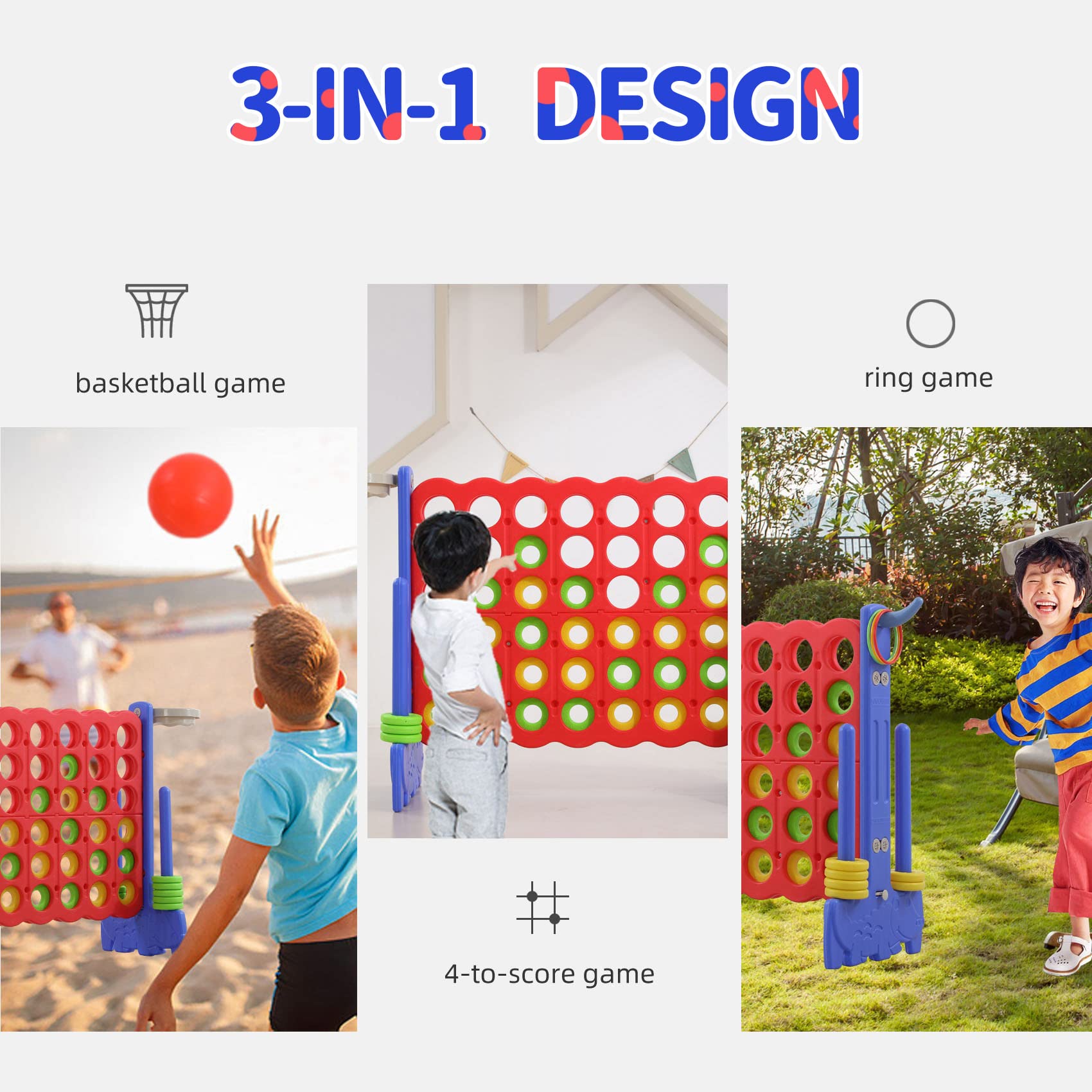 - ud83cudf1e3-IN-1 GAME DESIGN: Unlike the usual 4-To-Score toys on the market, our 3-in-1 game set has a variety of gameplay options. Basketball game and ring game offers more fun.