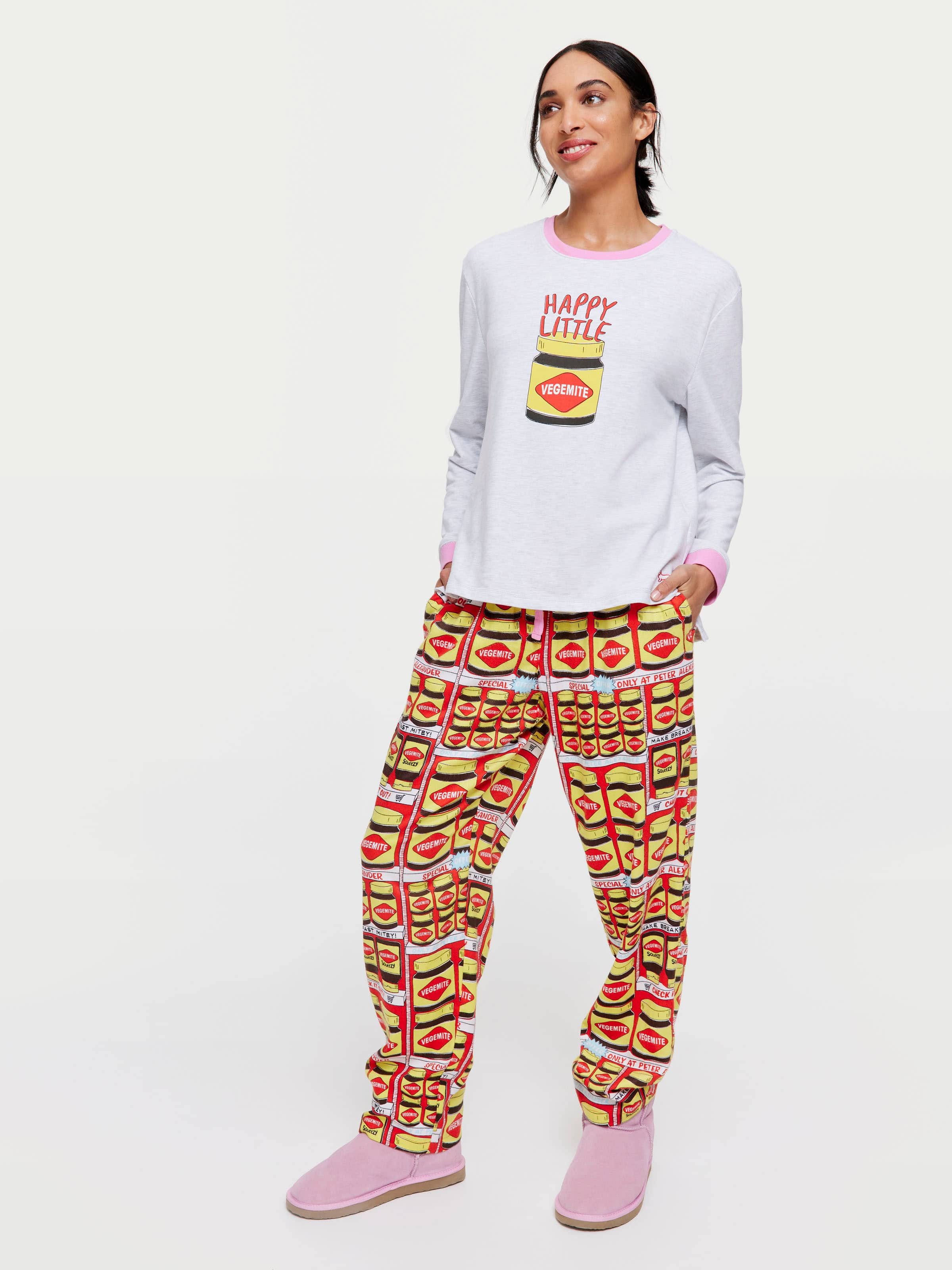 You'll be looking mite-y fine in this winter PJ set! Featuring a terry sweater and matching bamboo flannelette pants, this printed duo is sure to make her the Happiest Little Vegemite.?