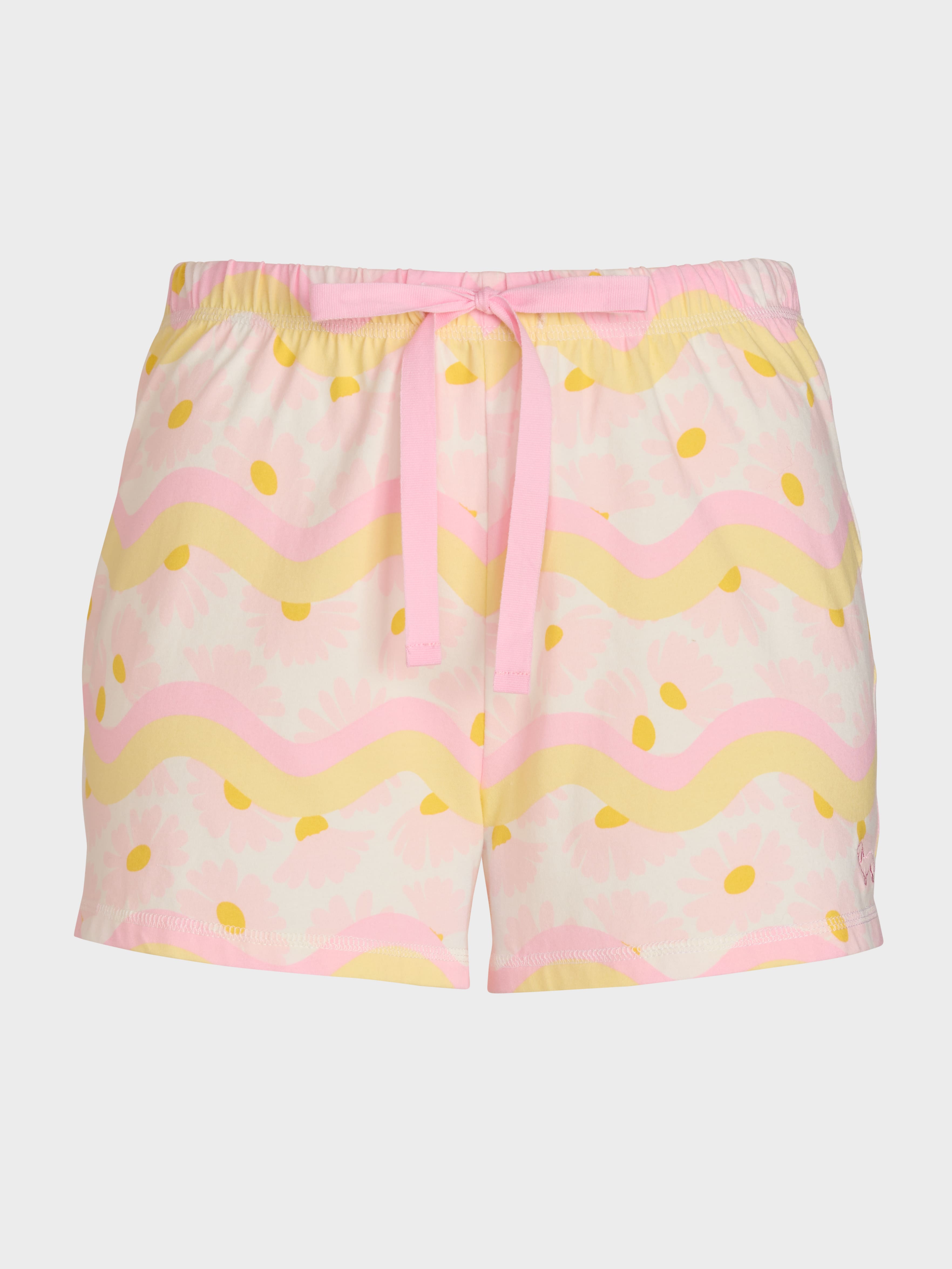 Cover me in daisies with these sweet women's mini shorts! This retro floral print makes for a perfect set with the matching squiggle tee.