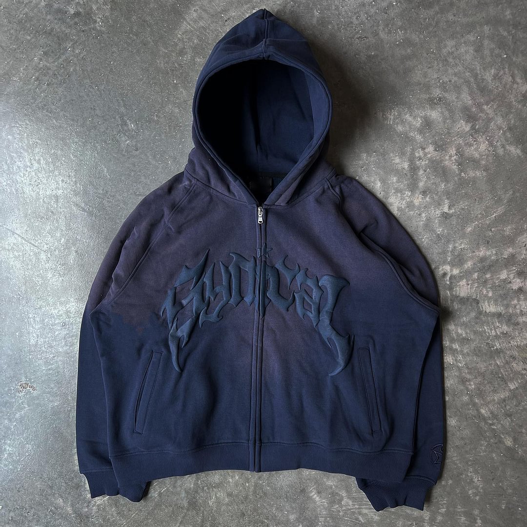 • Zip up statement print street style hoodie